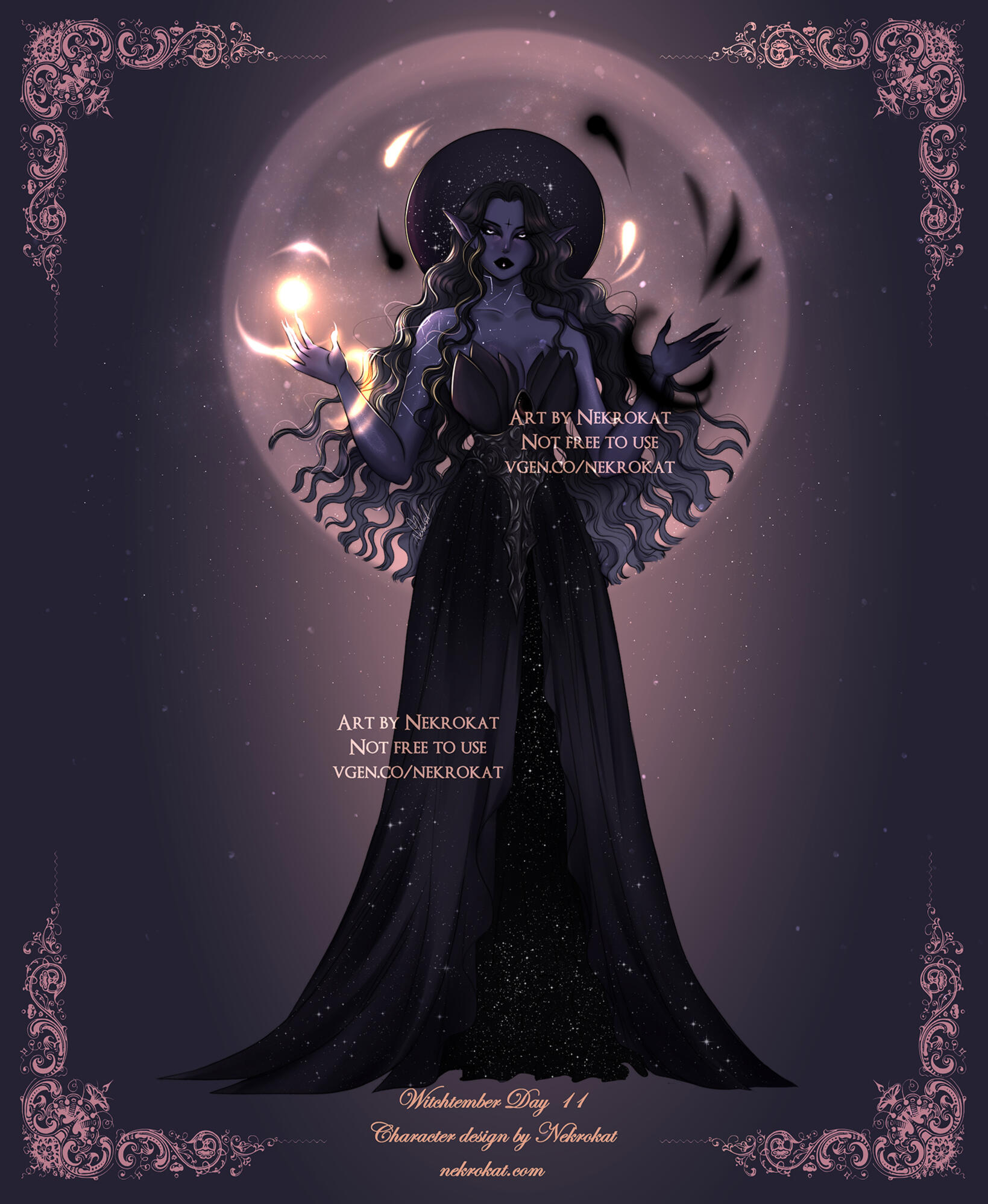 Space - Nocturnal witch, who gives and takes energies from the universe to embrace entropy; sees through planes of existence. Despite her scary looks and knowledge about chaos, she is sweet and warm.